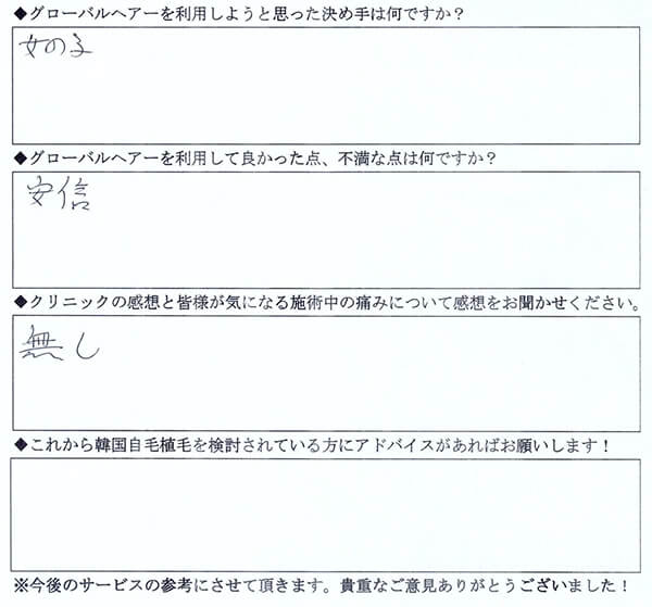 女性体験者経過